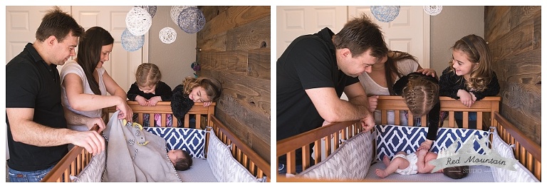I had such a blast with this family of 5! I love, love, love doing pictures of newborns and to add in two awesome big sisters made it that much more fun! We laughed, we explored, we jumped on the bed, we compared feet, you know typical lifestyle/documentary style photography stuff. I don’t use a shot list when I go to a client’s home because I believe the magic happens when you let little ones be little ones. Enjoy a few of my favorites from our morning together.